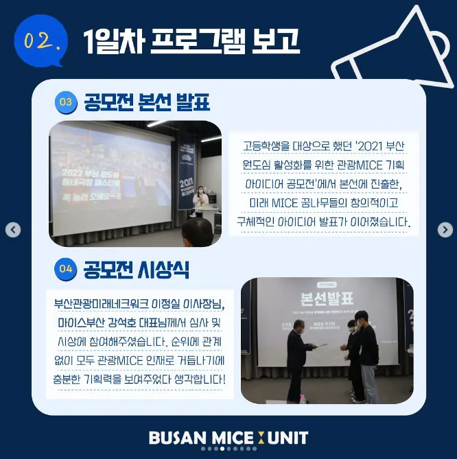 부산 지역 내 미래 관광 MICE 인재가 되기 위해 다양한 행사를 직접 기획/운영하며 전문가의 자질과 역량을 기르고자 합니다.